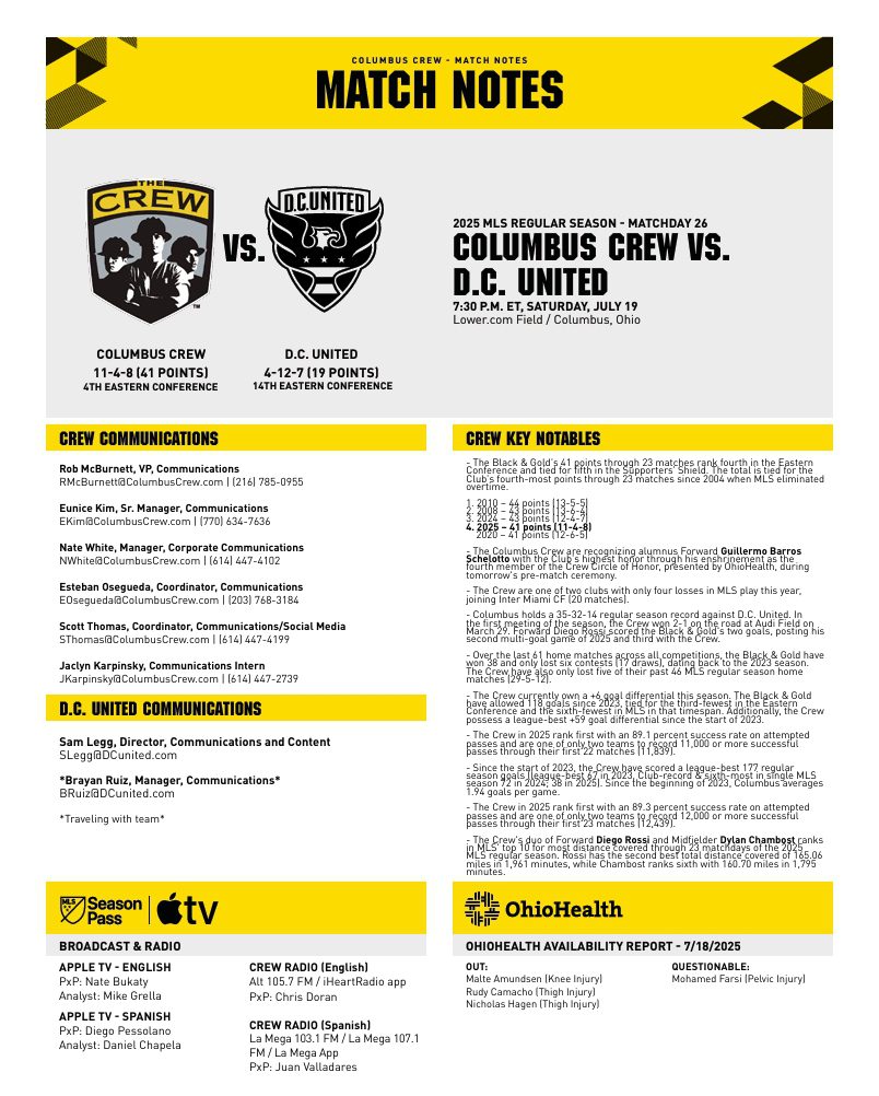 Columbus Crew looking for a win on Guillermo Barros Schelotto/Crew Circle of Honor Night, 7:30 PM Posted on 9 months ago by admin By Mariana Smithfield COURTESY CREW COMMUNICATIONS Post navigation Previous article Tonight’s OhioHealth Availability Report | Columbus Crew vs. D.C. United | Saturday, July 19, 2025Next article Major League Soccer Standings for Saturday July 19, 2025