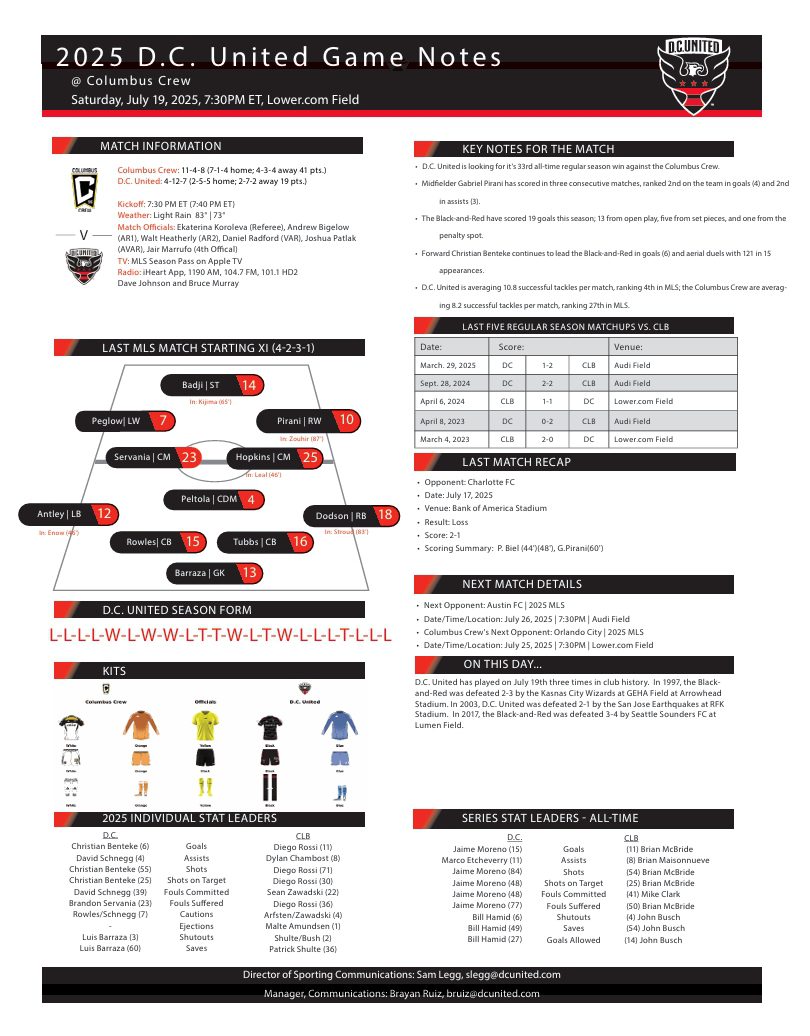 DC United comes to Columbus for 7:30 PM Matchup with Crew Posted on 9 months ago by admin By Mariana Smithfield DC UNITED’s TOP PLAYERS COURTESY DC UNITED COMMUNICATIONS Post navigation Previous article Columbus Crew Legend Guillermo Barros Schelotto Newest Member of Team’s Ring of HonorNext article Matchday Stats for DC United at Columbus Crew