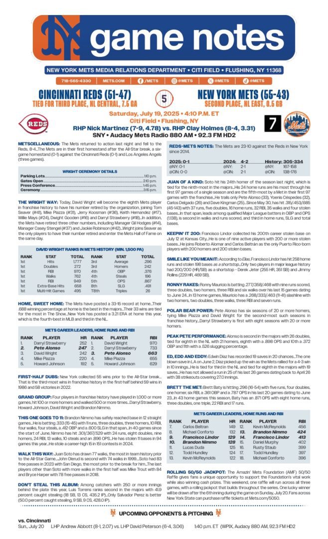 NY Mets try to rebound against Reds today after 8-4 loss Friday Night Posted on 9 months ago by admin By Wilton Kinross COURTESY NEW YORK METS MEDIA RELATIONS Post navigation Previous article Reds at NY Mets today for a 4:10 PM Saturday Afternoon MatineeNext article The Athletics at Cleveland Guardians tonight, 7:10 PM Start