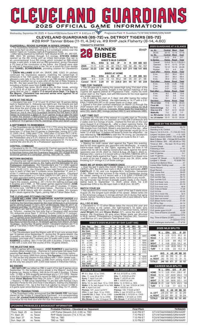 • Hot Guardians tied for 1st in AL Central Division hosts slumping Tigers, 6:40 PM